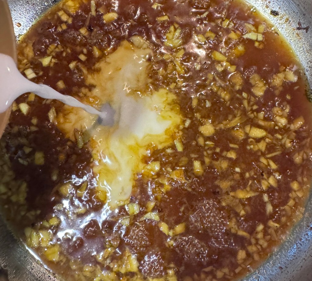 3. Once at a simmer add the arrowroot slurry and 1/2 a tablespoon of red pepper flakes.