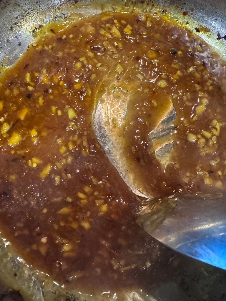 5. Taste your sauce! Again I don’t have measuring cups. I highly encourage you to taste your sauce and decide for yourself if you want to make changes. If you want your sauce to be sweeter, add more honey. If you want more of a bite add more lemon juice. If you like a kick, consider adding more red pepper flakes. If you find that your sauce is too thick mix in additional chicken broth.