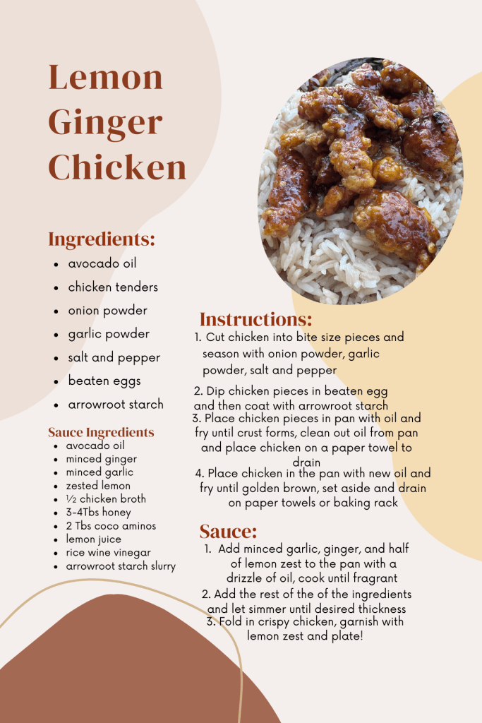 7. Finally plate your delicious meal! Garnish with the rest of your lemon zest, but of course that is optional. I made a side of rice cooked in bone broth and oven roasted broccolini.